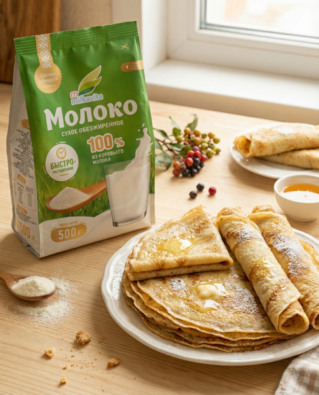 Рецепт приготовления блинчиков на сухом молоке от Milkavita